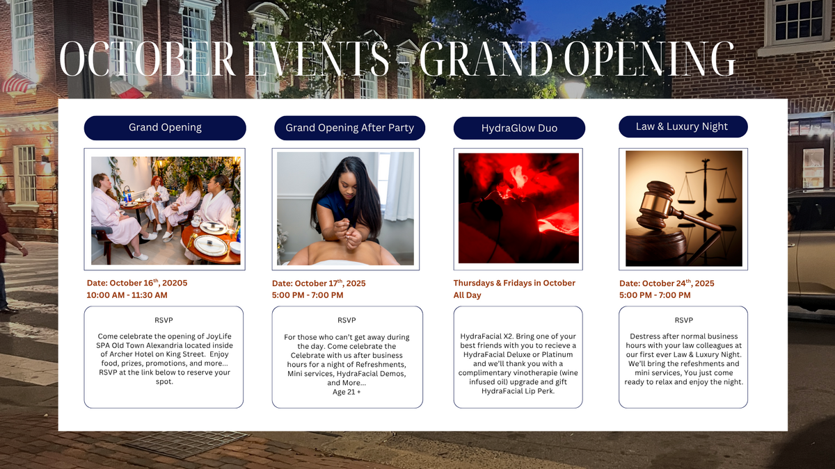 Give the gift of pure luxury and wellness with a JoyLife SPA Gift Card. Perfect for any occasion, our gift cards can be used for individual treatments—like rejuvenating facials, restorative massages, or nail therapies—or applied toward exclusive group and package experiences designed to indulge all the senses. Whether you’re surprising a loved one, treating a colleague, or offering the gift of self-care, JoyLife SPA Gift Cards make it easy to share moments of relaxation and renewal in Old Town Alexandria’s most elegant spa.